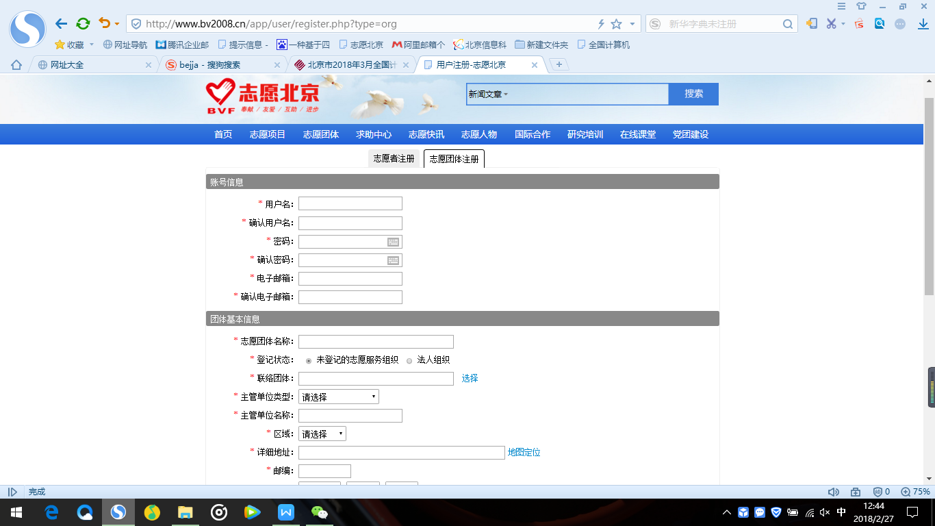 1、登录http://www.bv2008.cn/,点击“志愿团体注册”。