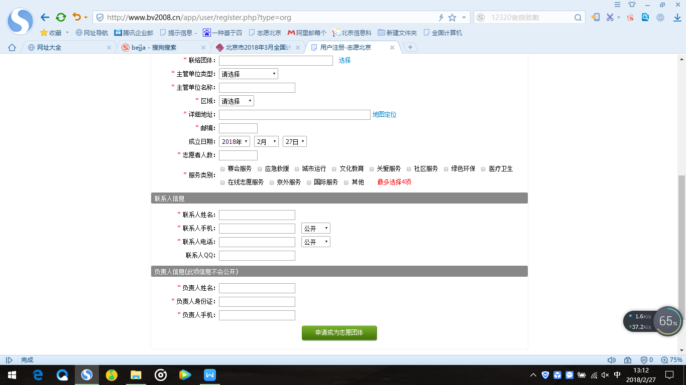 2、在弹出的“志愿团体注册”页面中逐项填写基本信息,标*号为必填项。